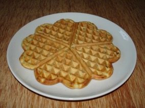 Waffeleisen vorheizen und je Waffel etwa 2 bis 3 Esslöffel Teig hineingeben. Die Waffeln goldbraun backen.